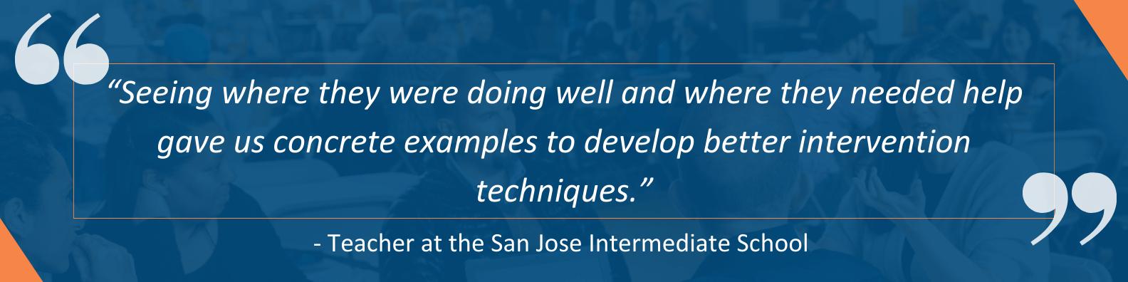 A quote from a teacher who participated in the MLL shadowing that reads: “Seeing where they were doing well and where they needed help gave us concrete examples to develop better intervention techniques.”