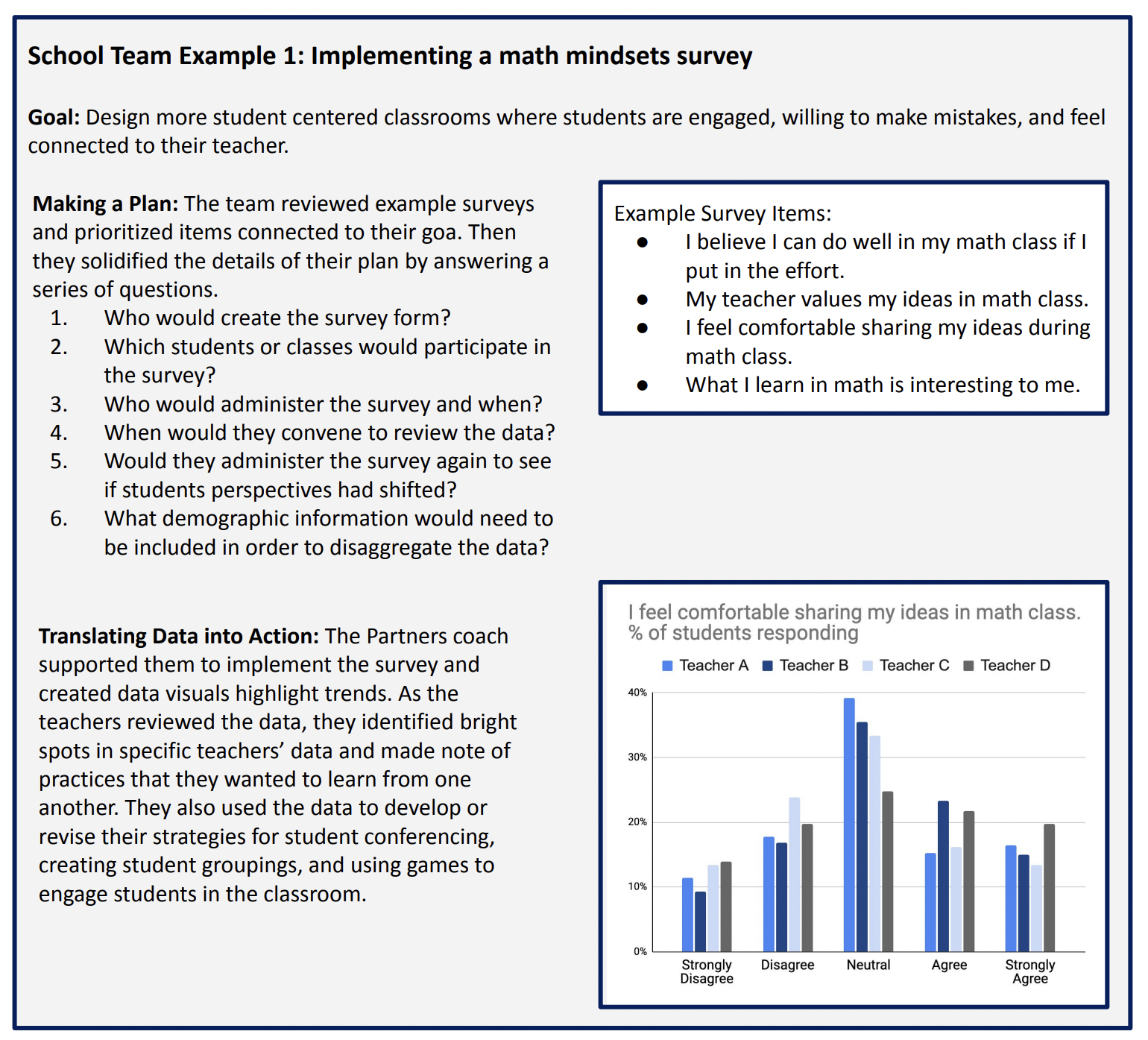 Below is an example from one school that implemented a student survey to better understand and improve student engagement and experience in math instruction.